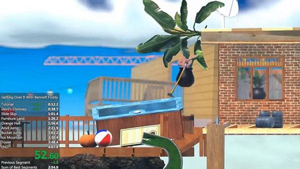 《Getting Over It》的操作很简单,仅需点击抡大锤,没有别的复杂操作,目标就是攀登一座由各类免费素材模型堆砌起来的山峰。然而,实际玩起来却极易让玩家崩溃,因为一旦操作不当或出现失误,就可能致使玩家得重头再来,所以每前进一步都无比艰辛,对玩家的耐心和反应能力是极大的考验。