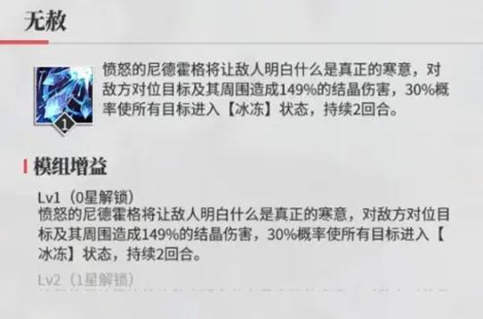 完成7天任务可获得100点积分奖励,对应的SSR角色尼德霍格(0星),其必杀技能有30%的概率将最多四个敌人冻结2回合。而且,凭借自身被动,尼德霍格在回合开始时就能自动充能并释放大招。正因如此,尼德霍格成为目前控制能力最为出色的角色,同时也是在黑渊中跨越大量战力、实现跨战力通关主线的关键角色。