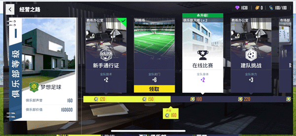 3、于“经营之路”页面内,你能够看到俱乐部名称、俱乐部等级、俱乐部声誉以及俱乐部价值等基本信息。页面右侧的声誉进度条与游戏功能的解锁进度相对应。就像上图呈现的那样,当俱乐部声誉达到180,“在线比赛”功能便会解锁。此时或许又会有玩家发问:“声誉要怎么获取呢?”