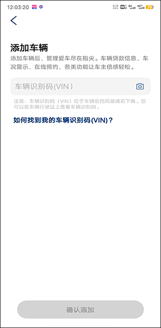 4、最后输入自己车辆的识别码,也就是VIN码,再点击“确认添加”即可;