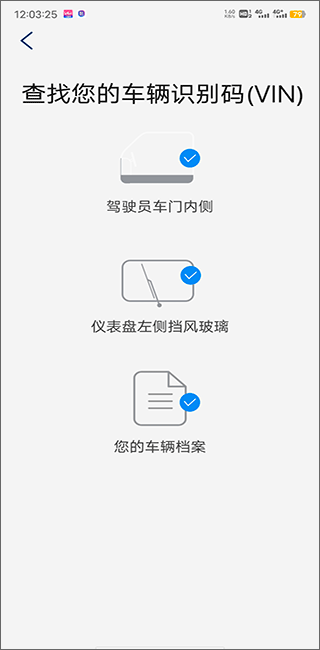 5、如果不知道自己的VIN码,您可以通过下图的三种方式进行查找。