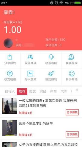 2、每一次点击转发出去的文章都能获得奖励,点击的次数越多,得到的奖励也就越多。