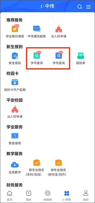 1、于本站下载中国传媒大学官方APP,开启该APP后,无需注册登录,直接点击“i·中传”板块进行学号查询。