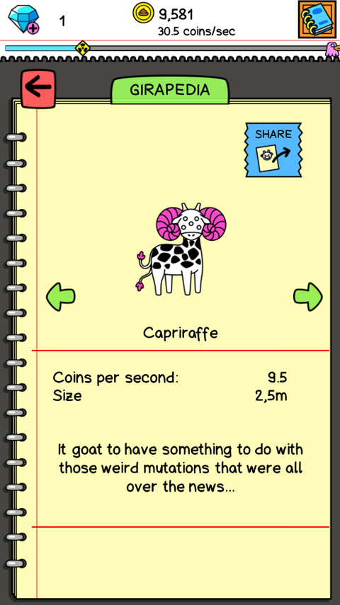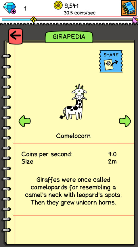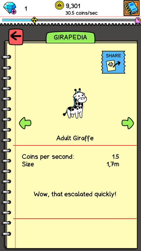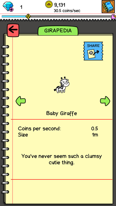 2. 轻点左下角的长颈鹿图标,选购一只全新的长颈鹿并放置于屏幕之上。