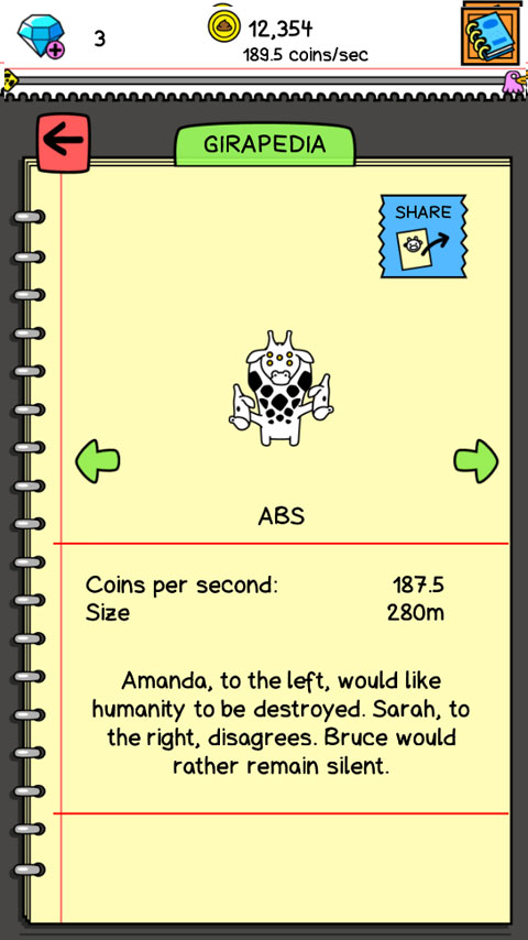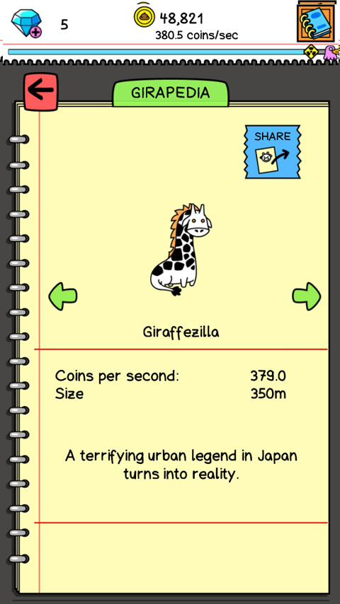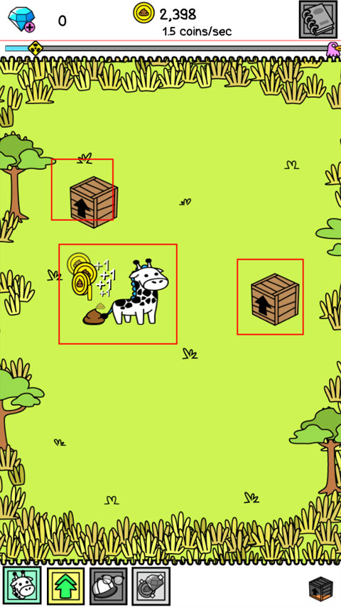 游戏伊始,只需点击箱子就能获得长颈鹿,而长颈鹿所产生的粪便会转化为金币。