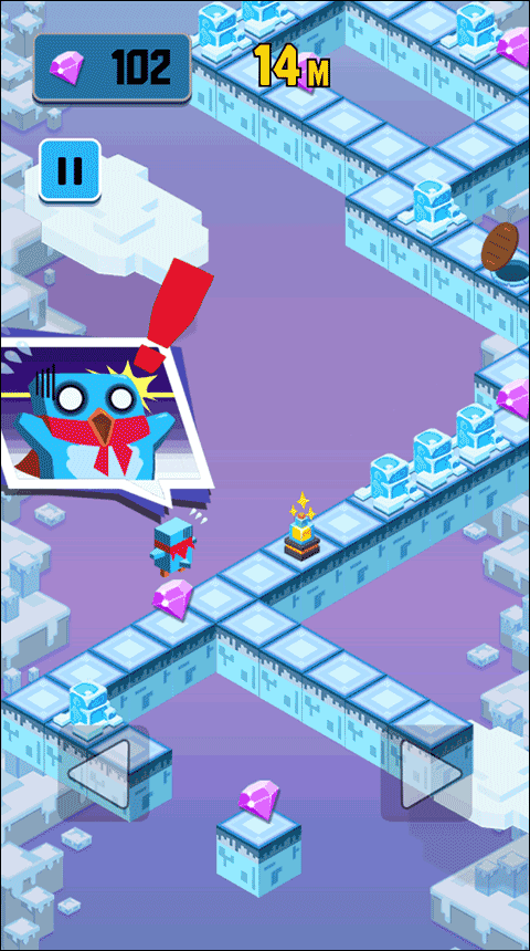 3、由于游戏不存在边界的概念,在许多情况下,后方的冰块会持续融化,玩家必须在紧张状态下慎重规划好每一步,否则企鹅就会掉落。