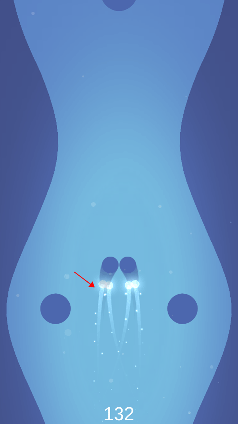 3、游戏玩法仅有两种:长按屏幕与松开屏幕。当遭遇道路极为狭窄且两侧均存在障碍物的情形时,需长按屏幕,促使两个圆点相互交叉,以避免圆点受到伤害;而当两个圆点中间出现障碍物时,则要松开屏幕,让两个圆点分散开。