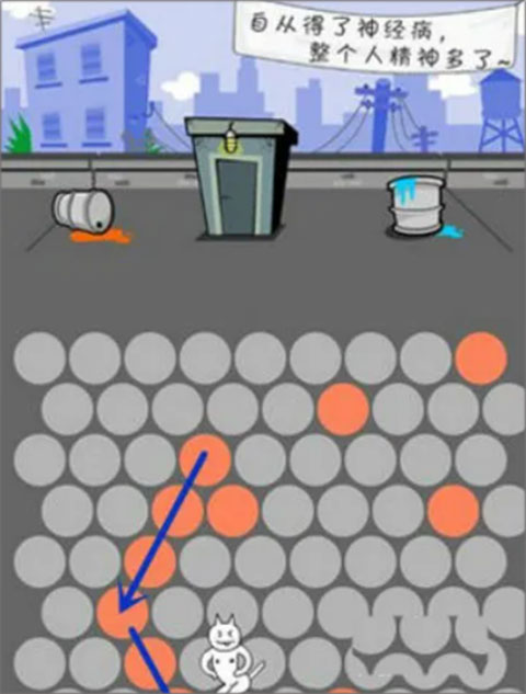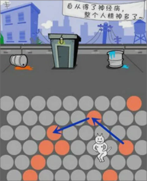 2、借助地图上原本就存在的红点,把它们连接成一条直线,如此便能在步数上超越神经猫。运用原有的红点封堵住逃跑路线,这是成功围住神经猫的关键技巧。