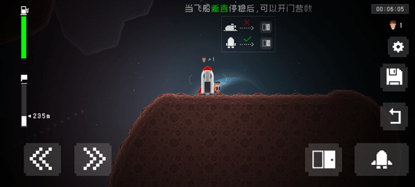 注意啦:操控按键实现平稳降落,过程中留意燃料消耗情况,还要尽可能多地营救那些散落在各个地方的幸存人类!特别要记住,在关键节点一定要进行保存哟!