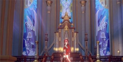 走过女神像广场,便来到瑟菲拉教堂。教堂设有传送点,能径直进入内部。教堂内部的建造极为精致且圣洁,地板由黑白色菱格构成,被清扫得干干净净,一尘不染。窗户是蓝绿色调的花窗玻璃,在阳光照耀下光彩夺目。教堂两侧的长椅呈对称分布,还有镶嵌着吊灯的罗马柱。刻有太阳纹样的地板一直延伸到教父的讲台,整个教堂内部看上去既和谐庄严,又神圣美丽。