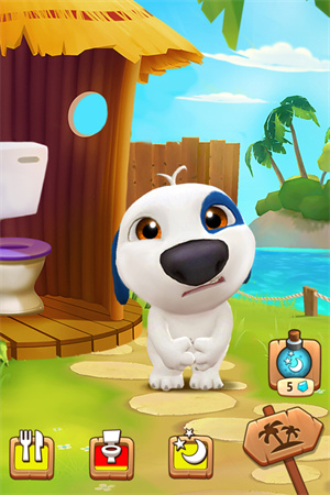 1. 悉心照料小汉克:初入游戏,按照提示对汉克狗发出指令,喂食、引导它大小便、哄它睡觉等,让它健康成长。注意调整时间,夜晚时点击太阳转变成月亮,让汉克狗安心休息。