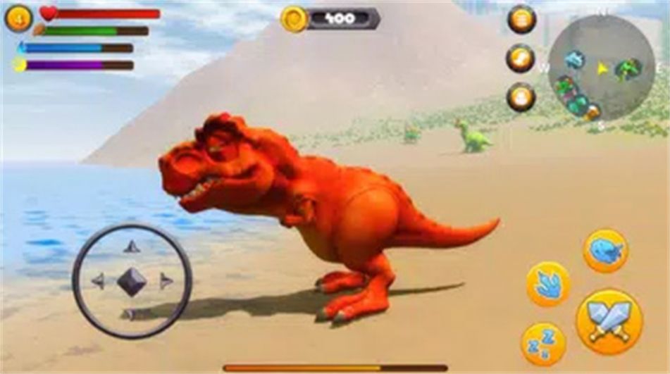 3、生存挑战是游戏的重要内容。霸王龙需要寻找食物,如各种食草恐龙,同时还要警惕其他肉食恐龙的攻击,像迅猛龙群的骚扰、棘龙的领地争夺等。