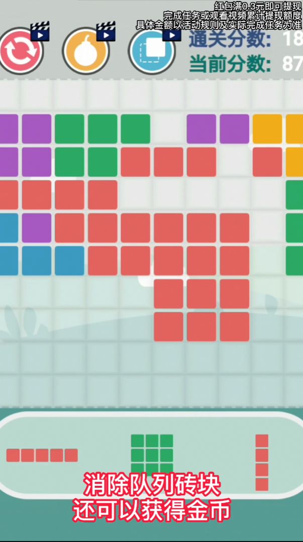 2、挑战模式:在挑战模式中,会设置一些特殊的任务或限制条件,如限定使用某种道具的次数、在特定的砖块布局下完成消除等。完成挑战任务可以获得丰厚的奖励,包括更多的红包和游戏道具。