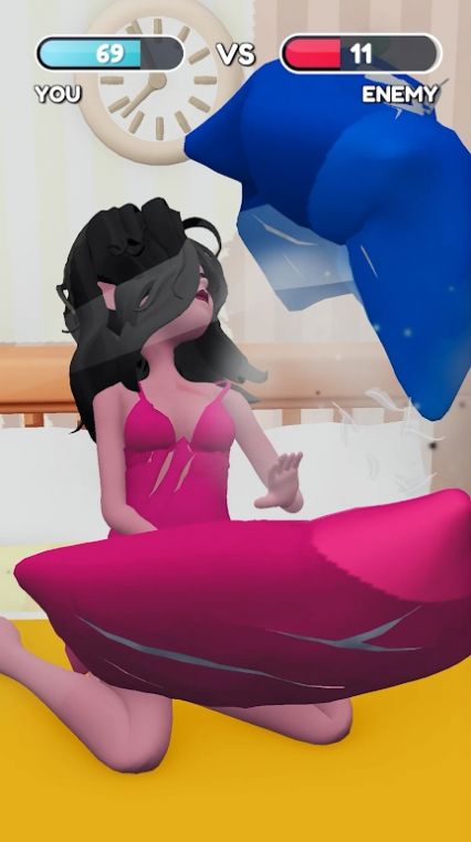 2、对战操作:在对战过程中,玩家通过虚拟摇杆控制角色移动方向,点击攻击按钮向目标方向抛出枕头进行攻击,点击防御按钮则可以抵挡来自前方的枕头攻击。同时,还可以通过滑动屏幕来调整视角,更好地观察战场情况。