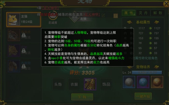2、宠物培养:获取宠物后,您可以进行培养来提升它们的能力。培养包括提升宠物的等级、技能和天赋。