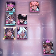 此时游戏应该在2-3费阶段,虽然你可以用君主技能破除对手的格子,但是没有必要浪费宝贵的2费,所以站位对于游戏是很重要的,正常游戏状态下,我们默认正对面的站位法在需要进攻的前提下是最优的