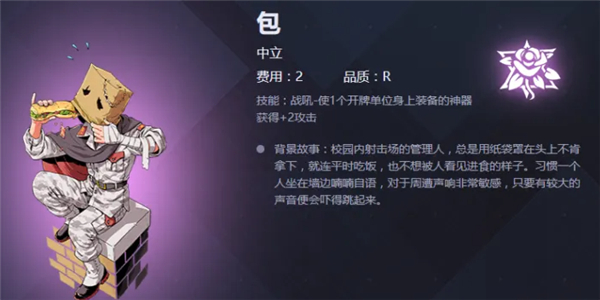不能主动攻击。盖牌机制的存在使得他成为一张很好的路障,但是费用偏高。很缺路障的慢速卡组可以携带。