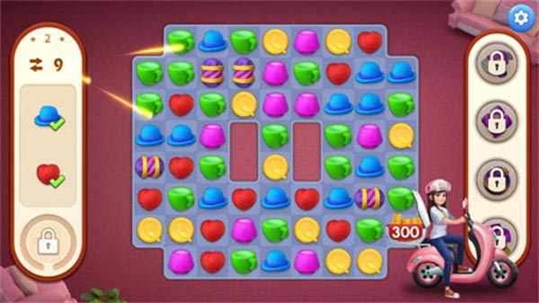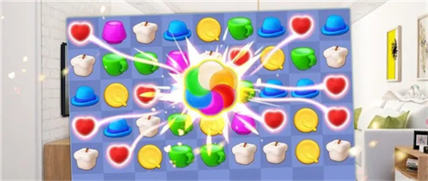 这款游戏运用了经典的三消换位操作方式,只需按住某个消除道具,并与相邻道具交换位置,当三个及以上相同的消除元素连成直线时,就能实现消除。在游戏进行房屋整理时,大多由系统自动完成,玩家无需过度关注操作流程,因此可以省去建造环节,将更多注意力放在消除玩法上,对于建造部分,以欣赏为主就好。