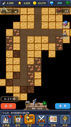 13、当玩家已无矿可挖,或者遇到实力强大的怪物无法击败时,可以选择重置矿区,从头来过。