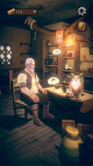 这款游戏以放置类主题打造,融入文字元素。整个游戏围绕森林中的一座灯塔、灯塔里的雕刻老人、一只1400岁的毒蛇猫头鹰以及众多客人展开。