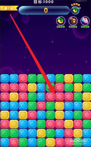 第一关要想最终成功并夯实基础,虽通过分数设定为1000分,但实际上得赚取3000分才行。在进行星星消除操作时,第一步先留意有没有多个星星连在一起的情况。要是自己一时找不到可消除的星星,系统会给出相应提示。