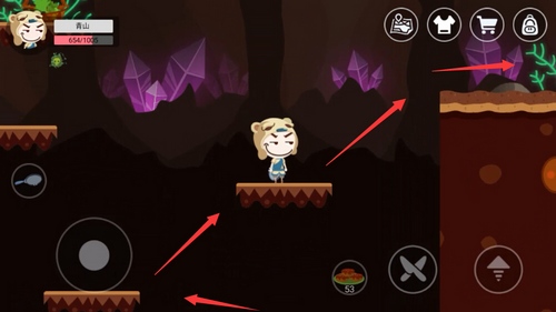 5、从悬浮台阶到达右边地图后,进入下图箭头指示的洞口。