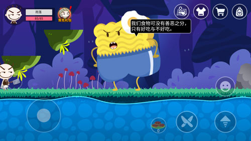 6、踏入洞口后,往右边行进,迎战香菜boss。借助悬浮台阶进行上下跳跃,以此躲避香菜boss的攻击。与此同时,运用背包里各类菜肴带来的buff加成,亦或是直接投掷饭团炸弹展开轰炸,如此便能够击败香菜boss。成功打败香菜boss后,会获取麻辣香菜冰淇淋的食谱,依据这份食谱,我们就可以制作出麻辣香菜冰淇淋。