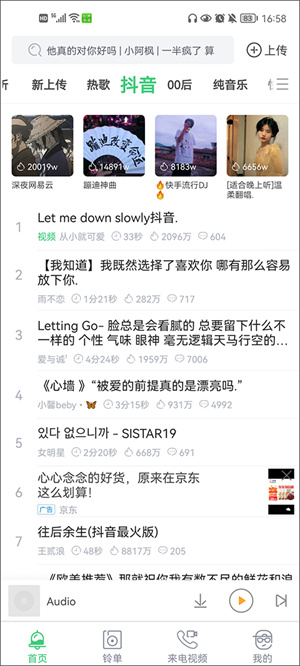 音乐、情感、语录、口白、Mc、电音、DJ、串烧舞曲、嗨歌、火热的快手抖音短视频点下就播放,9秒快速设置手机铃声,超简单呢。