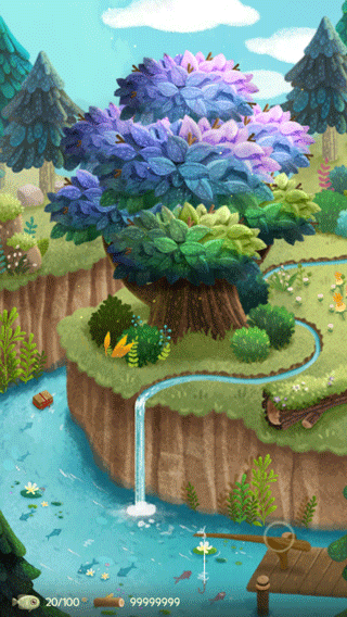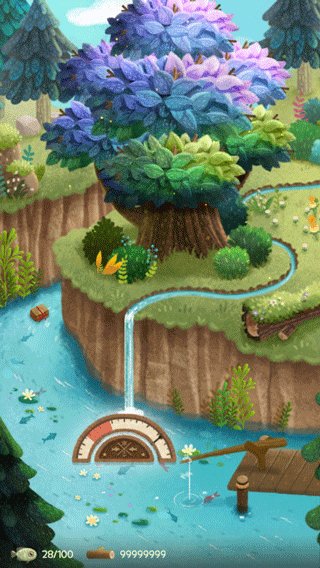 2. 向左滑动页面,即可开启小鱼与木头的收集。