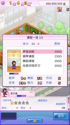7、现在开始的任务就是培养人才,开始给她上课吧,注意这里得到经济费用是无限的哦