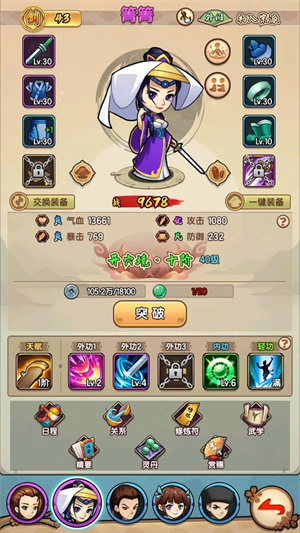3、人物培养可以随时散功传功,所以不用太担心弟子的养成出错,前期可以先培养工具人,获得心仪的核心队员再散功给主力弟子。