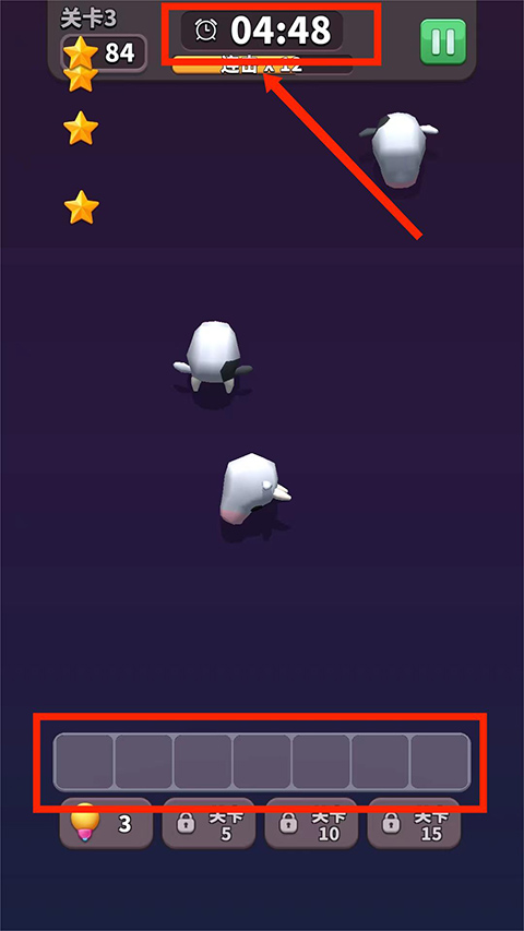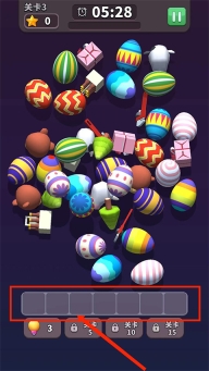 在游戏过程中,玩家要点击关卡里的物品,把它们放置到游戏下方的方块中。当三个相同的物品都置于下方方块时,就能实现消除。将所有物品都消除后,玩家即可通关,并且通关会得到相应奖励。需要留意的是,游戏上方设有倒计时,一旦时间耗尽,游戏就会结束。此外,要是下方方块被放满但仍无法完成消除,游戏同样会结束。