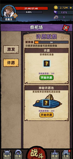 多余的装备该如何处置呢?可以借助献祭功能,把废弃装备转化为献祭值。当献祭池的值满了以后,就能进行一次“神秘许愿池许愿”,随即获取一件高品阶装备,同时献祭池会被清空。即便池子只有一半,也能够许愿获取装备,不过不太推荐这种做法,最好是攒满能许到品阶更高装备的那档再进行许愿。