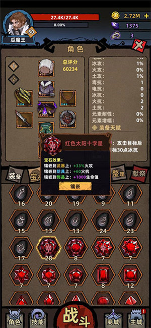 首要原则:一切围绕快速推图展开,尽快攻克下一关地图,以便及时更新更高级别的装备,同时角色升级速度也要尽可能快。因此,诸如 +经验增幅、+幸运这类属性,要尽可能多获取。此外,多准备一些增加经验增幅、幸运的宝石,镶嵌到饰品上。