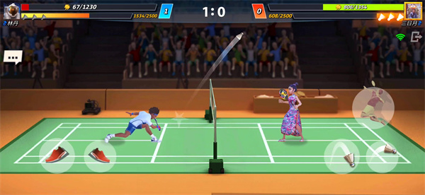 两键实现位移,两键完成击球,一键触发暴扣!独特的全方位移动击球设计,不仅考验你的灵活走位技巧,更需凭借智慧来应对战局!比赛中设有体力条,这就要求你巧妙运用羽毛球战术,有效压制对手,赢得胜利。