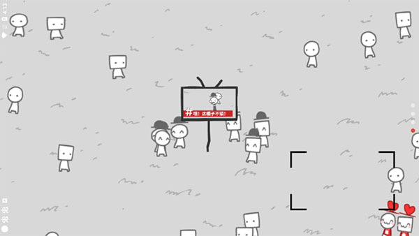 3、进入游戏,可以看到许多小人在草坪上闲逛,点击屏幕上的区域即可聚焦拍照,按下就可以将这个与众不同的小人拍下