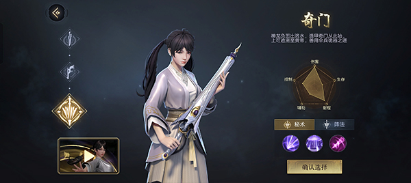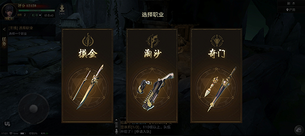 5、之后我们需要选择一个职业,这边可以根据自己的喜欢进行选择,优先选择奇门或者摸金,相对于这两个职业来说,淘沙的操作上有一定的难度;