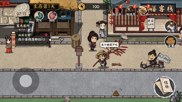 2、搬米的工作和打工模拟器里的搬砖类似,上午可以先做这个,报酬一般是150元。药店11点左右开门,搬完米后正好能去药店打工,给药店配药一天工资170元。翻垃圾桶或捡垃圾有时能捡到钱,捡到的垃圾和塑料瓶还能卖钱,但会降低健康值。前期每天都要去同福客栈租房,不然就只能睡大马路,睡大马路可能会遭小偷偷钱。