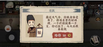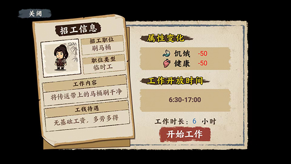 1、刚进入游戏,还是大家熟悉的新手教程。千万别怕麻烦就选择跳过,完成新手任务能获取少量金钱。虽说钱不多,但足够支撑我们在唐朝前期生活一周。前期赚钱工作跟打工模拟器类似,种类有限,大多是耗费时间的体力活。比如刷马桶这项工作,不太建议大家去做,因为这会大幅降低我们的健康值。要是健康值太少,还得花钱看病,实在得不偿失。