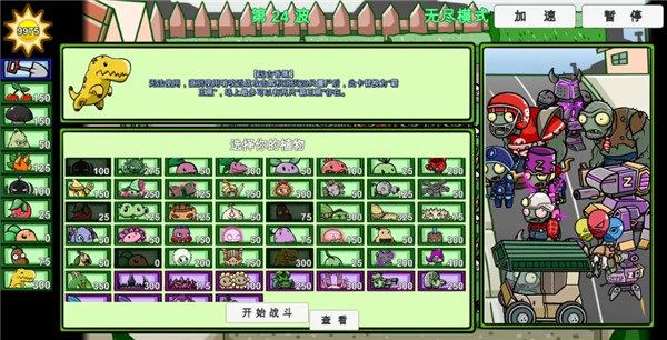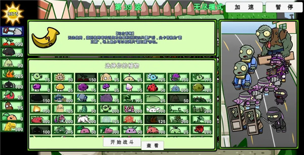 系统会默认给出3600阳光,2颗能量豆,过程种不能选取产阳光的植物,玩家选择自己的植物摆阵过关;
