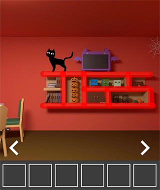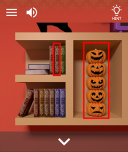 2、点击架子中间的柜子,输入密码后打开,从中获取半片纸。随后往后退,点击左边的南瓜,留意南瓜的表情。在南瓜左边中间位置的书,打开后会发现幽灵。