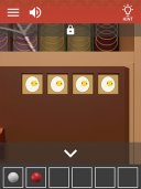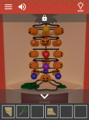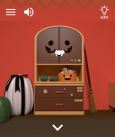 6、继续右转,点左边南瓜,根据之前看到的南瓜表情调整,记住从上往下的颜色,下方抽屉打开获得火柴。