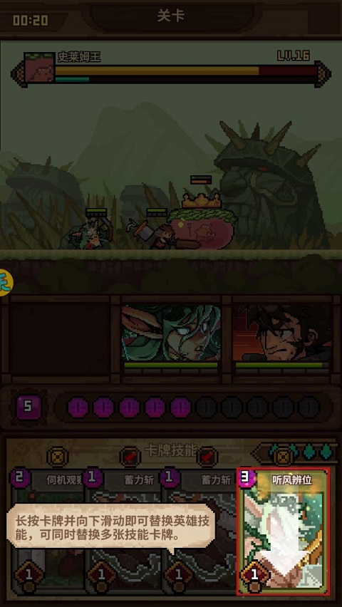 4、长按卡牌并向下滑动,即可替换英雄技能,可同时替换多张技能卡牌。