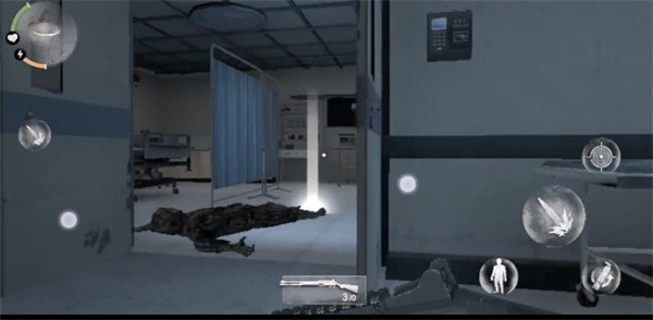 5、接着向前走,会遇到一只僵尸,将其击败后能获得钥匙。拿到钥匙继续前行,打开急救室的门开始探索。急救室左手边的门,可以用手枪打破,之后再继续行动。