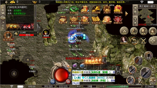 2、1.76小极品+5版本,装备获取全凭打怪。只要是血量5000以上的BOSS,都有机会掉落屠龙。