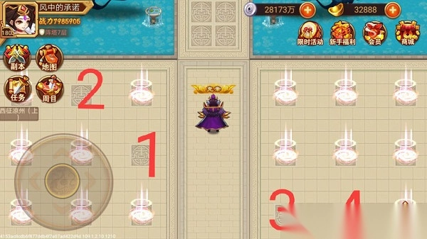 按图中数字顺序即可破阵,破阵后打败许褚即可获得许褚专属和功勋值。