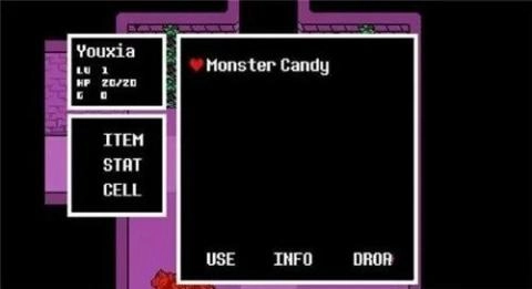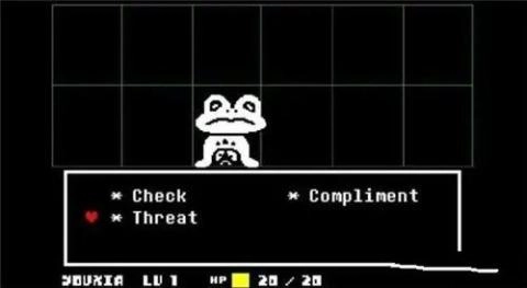 除了直接攻击外,玩家还可以通过“act”选项选择对怪物的行为,怪物会根据玩家的选择做出相应的反应,并通过上方的对话框以文字或画面的形式展现。
