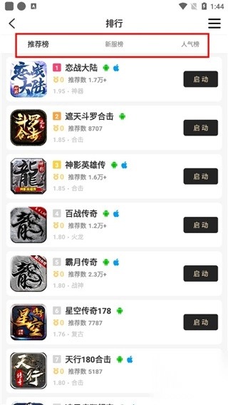 6、点击进入“排行”,便能看到“推荐榜”“新服榜”以及“人气榜”。各位不妨参考这些榜单,瞧瞧有没有自己心仪的游戏。