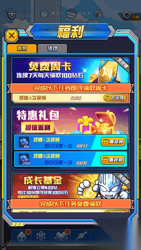 想要在超激斗银河战士奥特曼游戏中获得钻石金币,主要有以下几种方式: