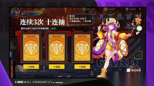 通关任务,获取十连抽三选一,一共33轮!一拳打翻所有敌人吧,一天百抽不用问,飞速升阶不是梦!